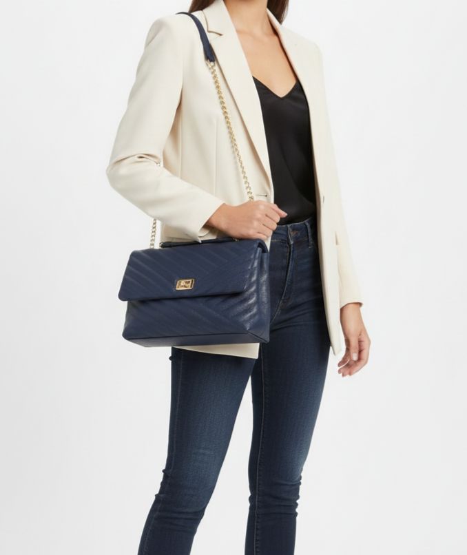 A Bolsa Azul Marinho Gloss com Alça Dupla em couro combina elegância e funcionalidade para mulheres modernas. Seu visual sofisticado é realçado pelas correntes douradas que enobrecem o design. Além de linda, a bolsa oferece versatilidade com duas formas de uso das alças, podendo ser usada no ombro ou transpassada para maior conforto. Confeccionada em couro de alta qualidade, apresenta acabamento em brilho gloss que valoriza seu tom azul marinho. Seu tamanho é ideal para o dia a dia, permitindo carregar os itens essenciais com organização e estilo. A peça possui fechamento seguro por aba com fecho dourado, que harmoniza com os detalhes metálicos e proporciona proteção aos seus pertences.