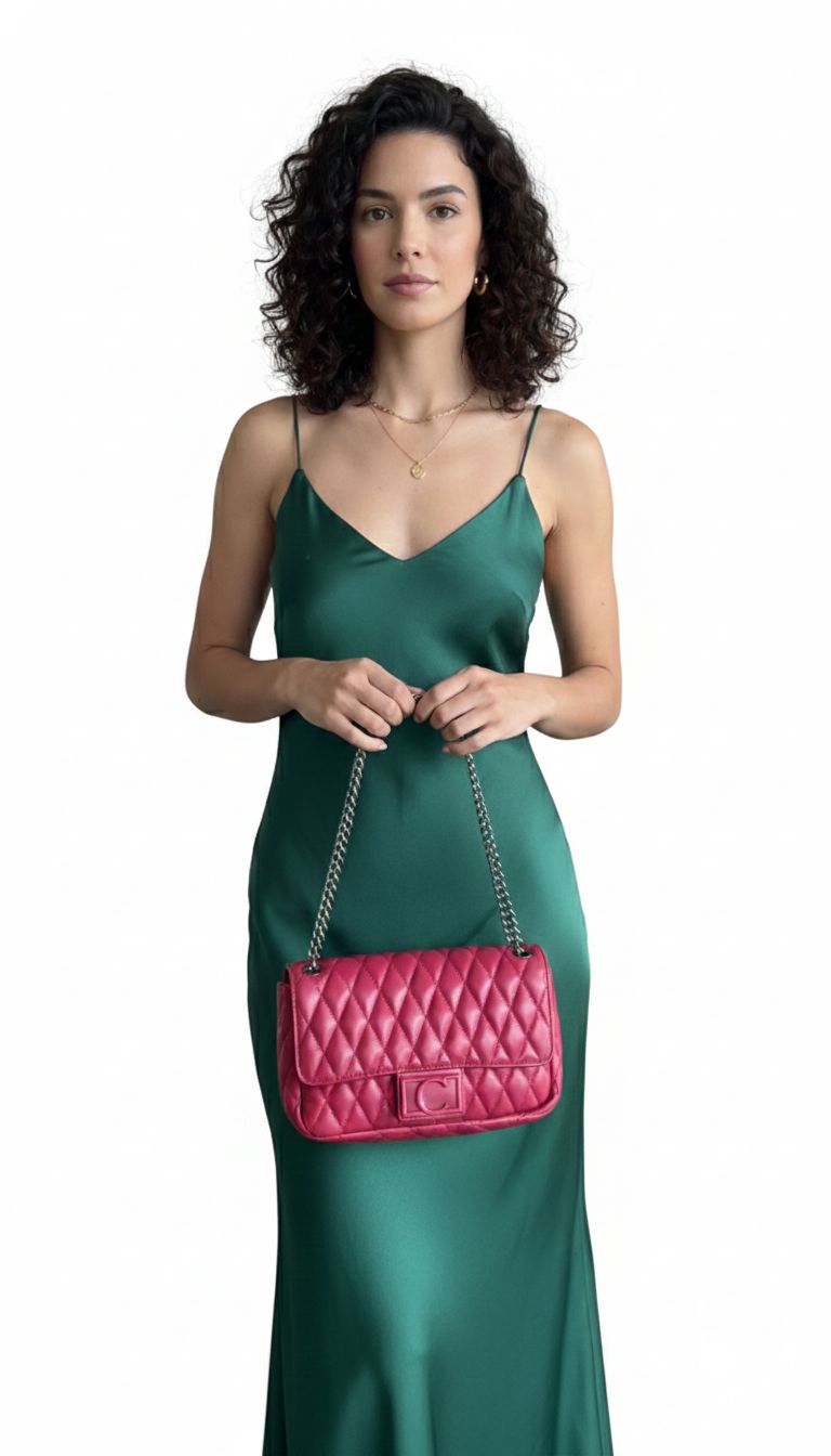 Conheça a Bolsa Média Rosa Cecconello em couro, ideal para quem busca elegância e praticidade. Com altura de 21 cm e largura de 30 cm, esta bolsa oferece espaço ideal para itens essenciais do dia a dia. Produzida em couro de alta qualidade, possui acabamento em matelassê e alça de corrente metálica resistente, garantindo durabilidade e estilo. Seu design compacto alia funcionalidade e sofisticação, perfeita para eventos ou uso casual.