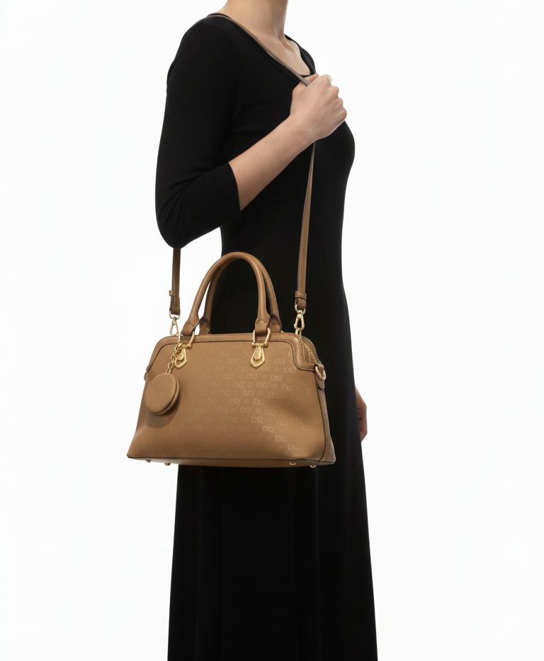 A Bolsa Feminina Chenson Relevo Monograma oferece design sofisticado e funcionalidade para o dia a dia. Confeccionada em material sintético resistente com acabamento em relevo monograma, garante durabilidade e estilo único. Seu formato estruturado possui alça dupla de mão e alça transversal ajustável e removível, proporcionando versatilidade no uso. O fechamento principal é em zíper, com repartições internas que organizam seus pertences com facilidade. Inclui chaveiro redondo com espelho para retoques rápidos e detalhes em ferragens douradas que valorizam o visual.