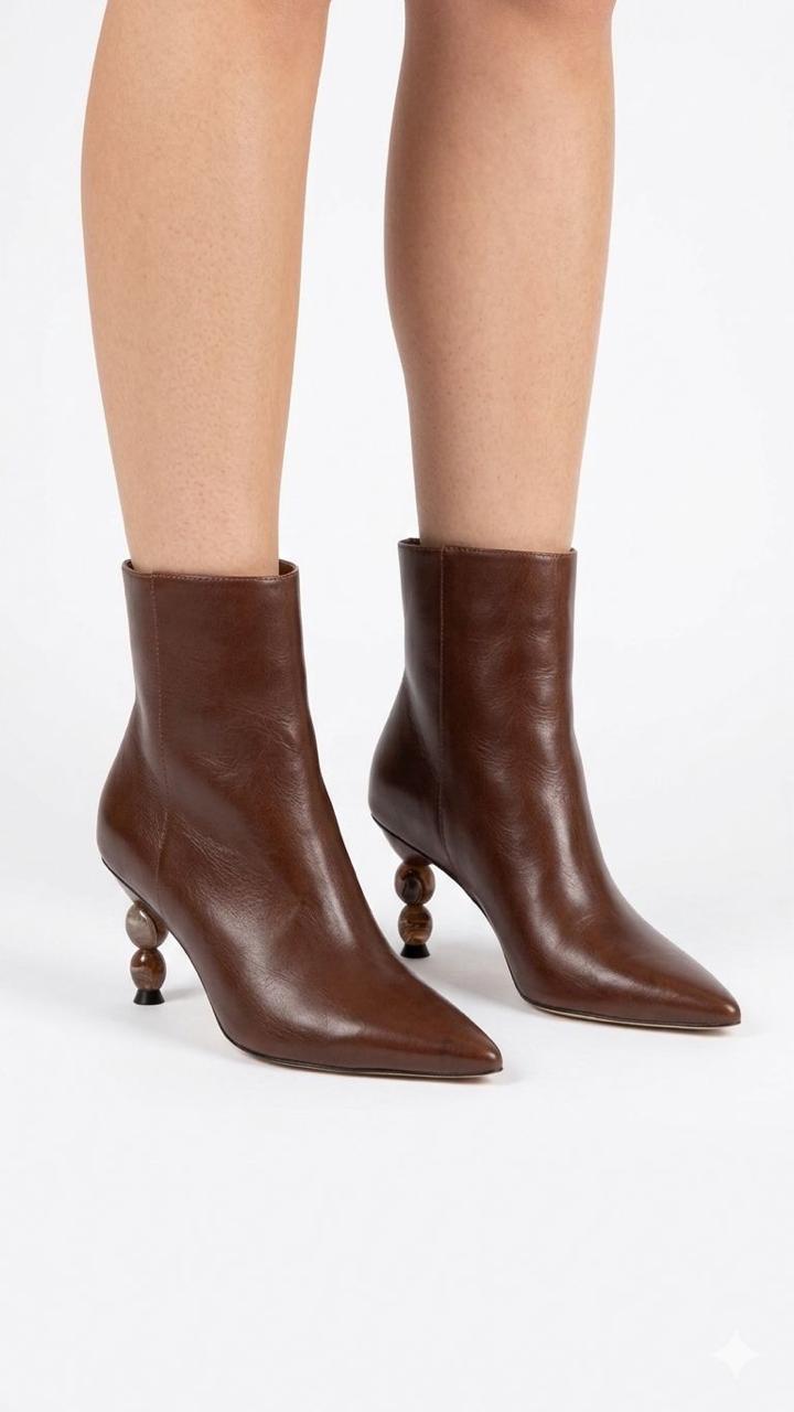 - Salto exclusivo com formato diferenciado que dá personalidade ao calçado Esta bota tem acabamento suave em couro marrom, formato elegante e salto esculpido, ideal para ocasiões casuais e mais arrumadas. O material de couro garante resistência e conforto ao usar. Uma escolha versátil para o guarda-roupa feminino.