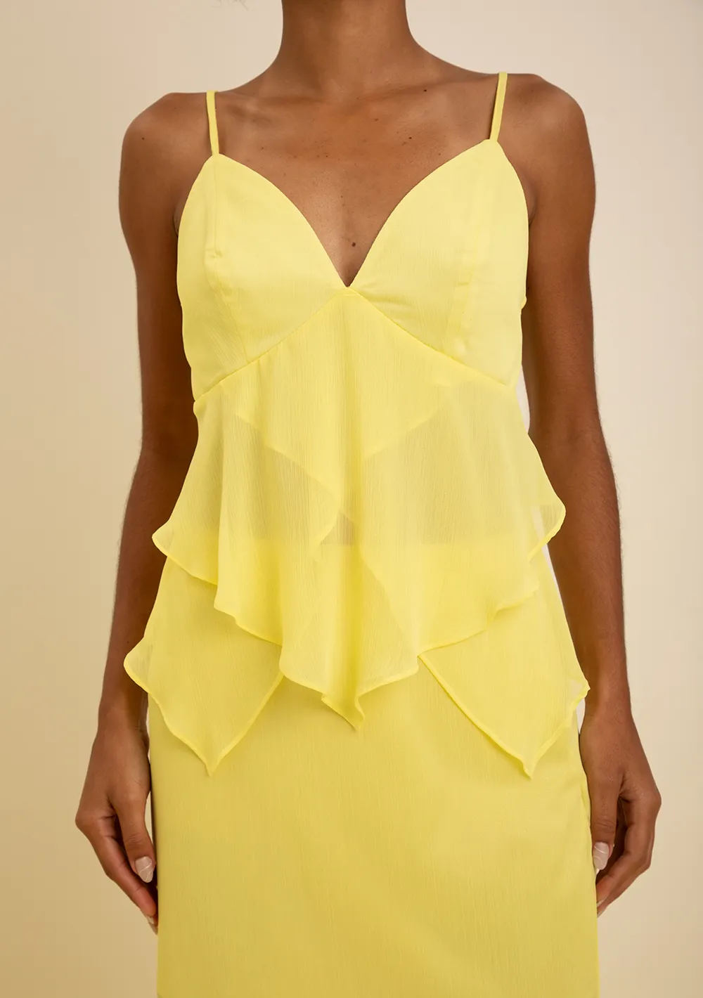 A Regata Zinco Solta Decote V na cor amarela é ideal para quem busca conforto e estilo. Feita 100% em poliéster chiffon, a peça se destaca pelo caimento solto que garante leveza e ventilação, perfeita para os dias quentes de verão. O decote em V valoriza o colo, realçando a feminilidade, enquanto a cor amarela traz um toque de frescor e alegria ao visual. Esta regata tem alças finas reguláveis, oferecendo ajuste personalizado para melhor caimento.