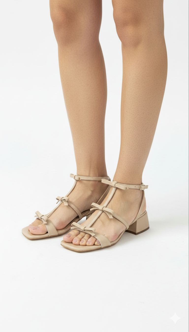A Sandália Nude Salto Baixo Cecconello oferece conforto e elegância para o dia a dia. Produzida em couro legítimo, garante durabilidade e sofisticação. Seu salto baixo proporciona estabilidade e conforto para uso prolongado, ideal para diversas ocasiões. O design com tiras delicadas e detalhes em laço destaca o estilo feminino e moderno da sandália, combinando com diferentes looks.