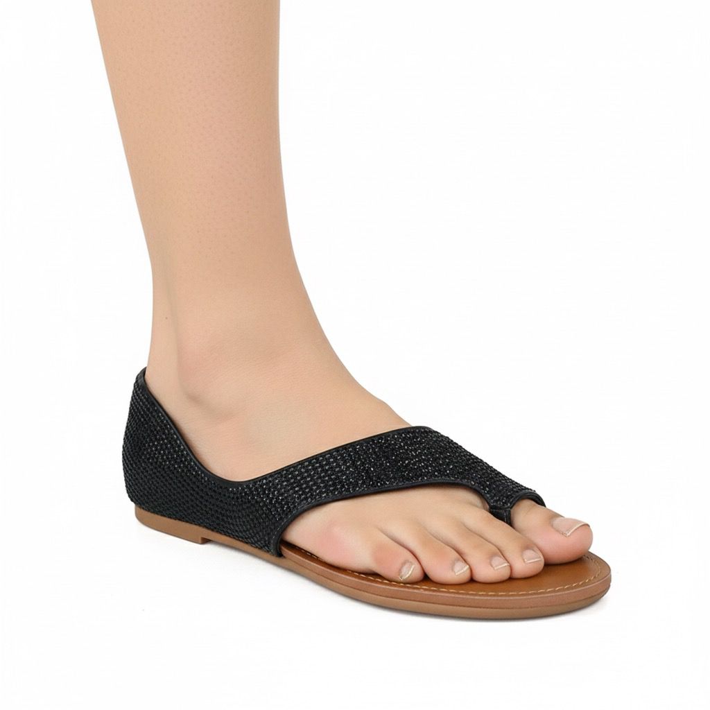 Apresentamos a Sandália Rasteira Bordada Paetê Valentina Flats na cor preta, ideal para quem busca estilo e conforto num calçado leve e sofisticado. Este modelo possui acabamento artesanal com paetês que garantem um visual elegante para diversas ocasiões. Sua estrutura flexível e palmilha acolchoada proporcionam suporte e conforto durante o uso prolongado, fazendo dela uma excelente escolha para combinar com looks casuais e festivos.